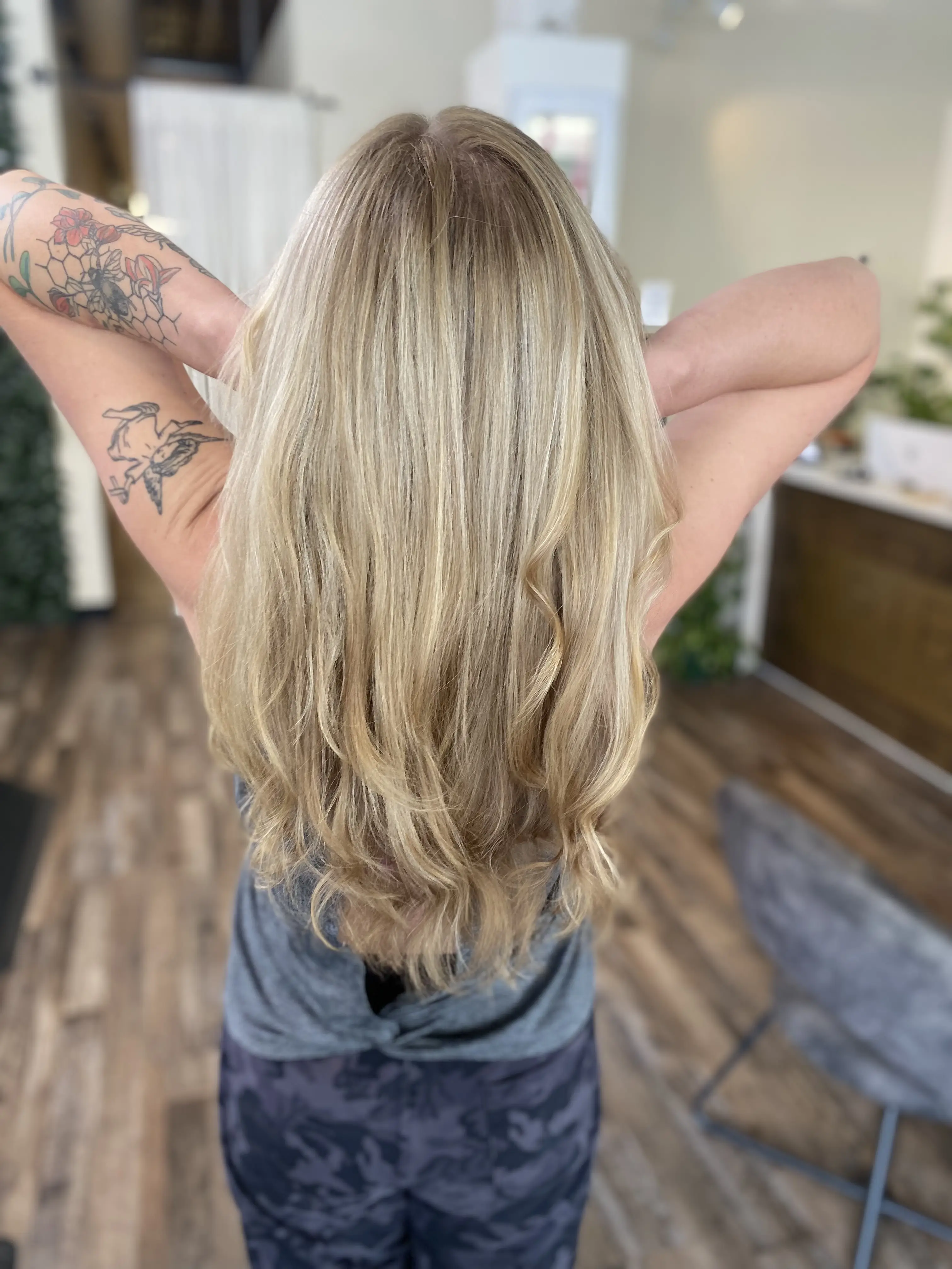 Transform your style with lush, Hand-Tied Extensions! Add luscious length, volume, and dimension without compromising hair health. Hair is expertly installed for a seamless, natural blend that moves and feels like your own. This is perfect for first time extensions, just a little fullness, and can be very low maintenance.